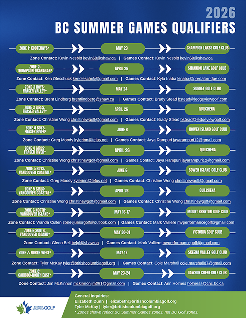 As a reminder, the BC Summer Games operate under a different zone system than BC Golf. The zones referenced here correspond to BC Summer Games designations.