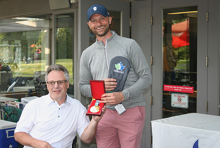 British Columbia All Abilities Chair Joe Higgins Presents Inaugural Men's Champion Matt Hallat With A Gold Medal