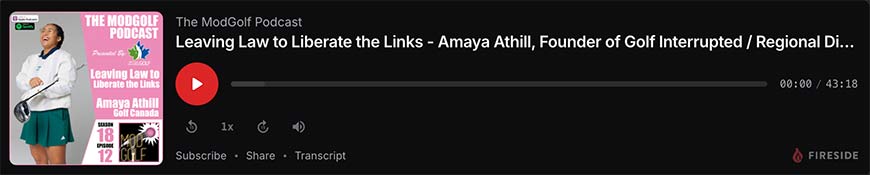In this episode ModGolf Podcast creator and host, Colin Weston, talks with Amaya Athill, Founder of Golf Interrupted and Regional Director with Golf Canada.