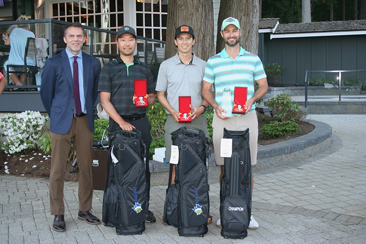 From L-R: Sandpiper GM Ted Swaine & BC's Men's Mid-Am Team, Mike Aizawa, Alex Cartwright & Nathan Ward