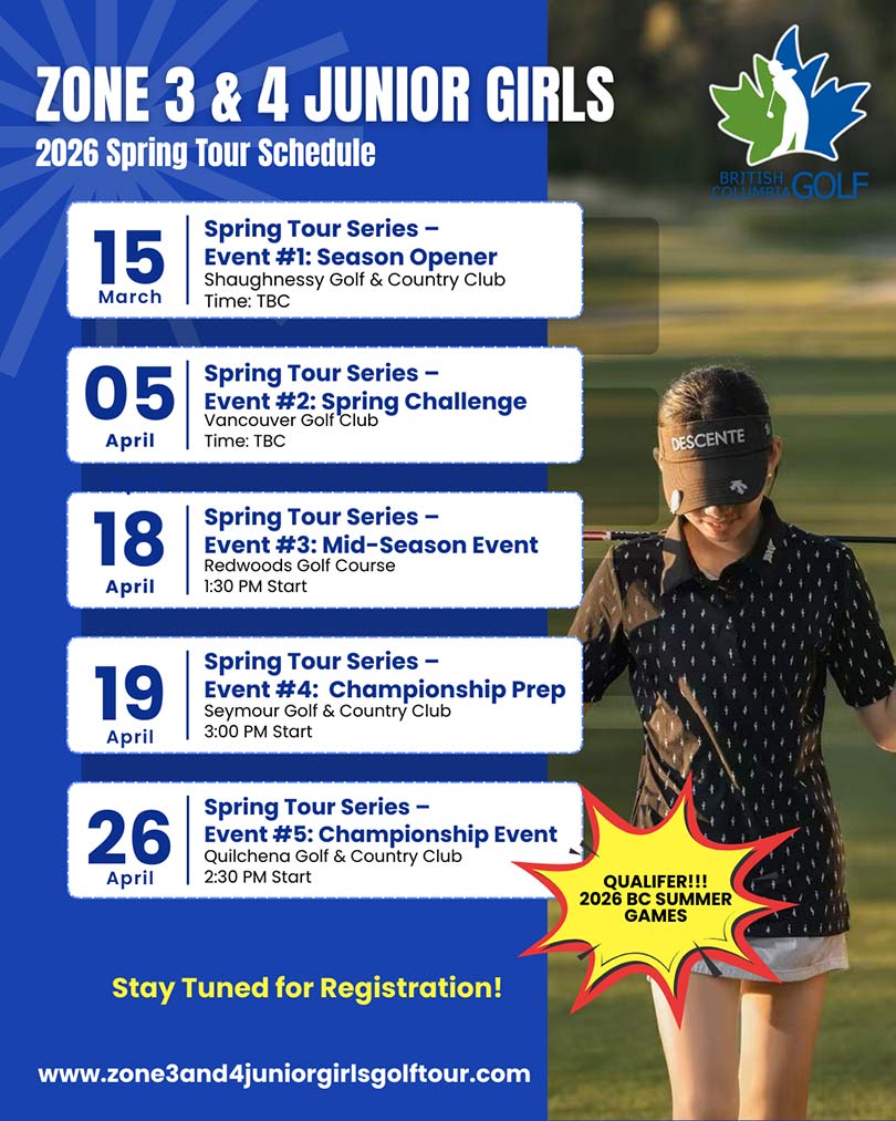 As the golf season approaches, planning is well underway following another successful year of junior competition. The focus remains on continuing the strong momentum built in recent seasons while providing meaningful competitive opportunities for junior girls across Zones 3 and 4. The 2026 season is set to deliver another excellent year of championship golf in British Columbia, featuring a quality lineup of host courses.